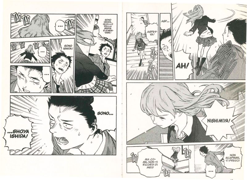 Il primo incontro dopo anni non va certo a gonfie vele, dopotutto Shoko continua ad odiare Shoya. Ma qualcosa, forse il suo modo di fare, il suo onesto pentimento, il fatto che abbia imparato la lingua dei segni o forse che abbia ancora il coraggio di buttarsi in acqua per aiutarla a cercare il famoso quaderno che usava per comunicare, fa cambiare parere a Shoko, che conclude l’inaspettato incontro con un “Ci vediamo”. Ishida trova così un motivo per continuare a vivere.
