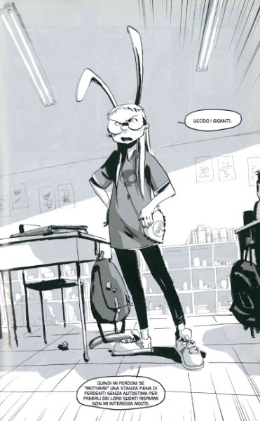 I kill giants è un fumetto di formazione, sul difficile passaggio all’età dell’adolescenza per una bambina anticonformista che lotta. Sì perché Barbara non subisce gli eventi: si ribella ai bulli a scuola e sconfiggerà il gigante portatore di morte e distruzione. Ma il vero gigante è dentro di lei, nascosto al primo piano di casa sua…