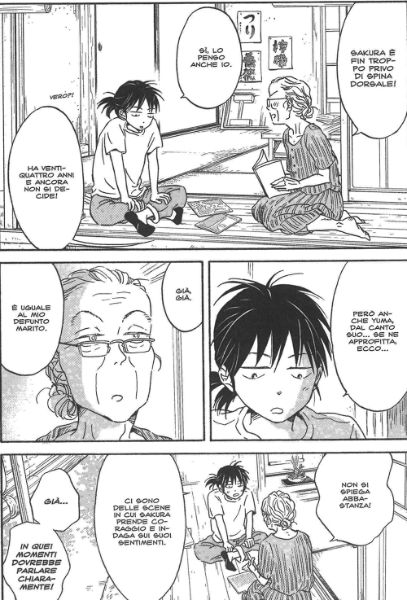Da questo incontro fortuito ne seguiranno altri, prima in libreria e poi fuori: la signora Ichinoi infatti, appassionatasi alla trama, compra i volumi seguenti e si accorda con Urara di discutere la trama lontano da orecchie indiscrete. La signora Ichinoi, un’anziana signora che vive da sola perché la figlia è all’estero, e Urara, un’adolescente con difficoltà a relazionarsi, scopriranno non solo di aver trovato qualcuno con cui parlare di manga, ma anche una grande amica, di cui avevano certamente bisogno.