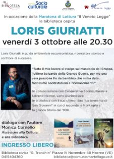 20.30 Incontro con lo scrittore Loris Giuriatti nella sala polivalente della biblioteca. In collaborazione con Cooperativa Socioculturale e Libreria Heimat. Ingresso libero.