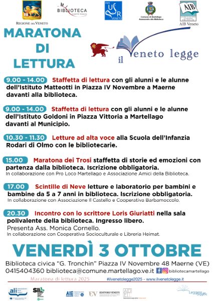 Anche quest'anno la biblioteca di Martellago partecipa alla Maratona di Lettura.