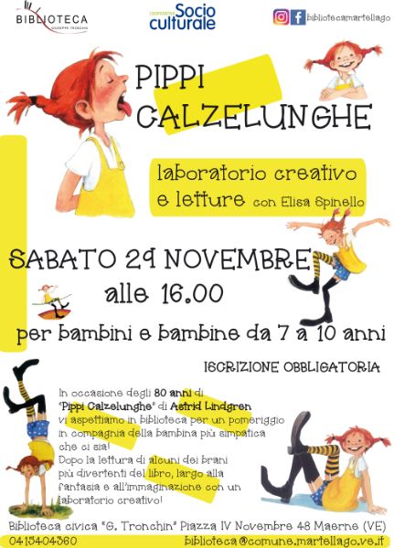 In occasione degli 80 anni del libro "Pippi Calzelunghe" di Astrid Lindgren vi aspettiamo in biblioteca per un pomeriggio in compagnia della bambina più simpatica che ci sia!